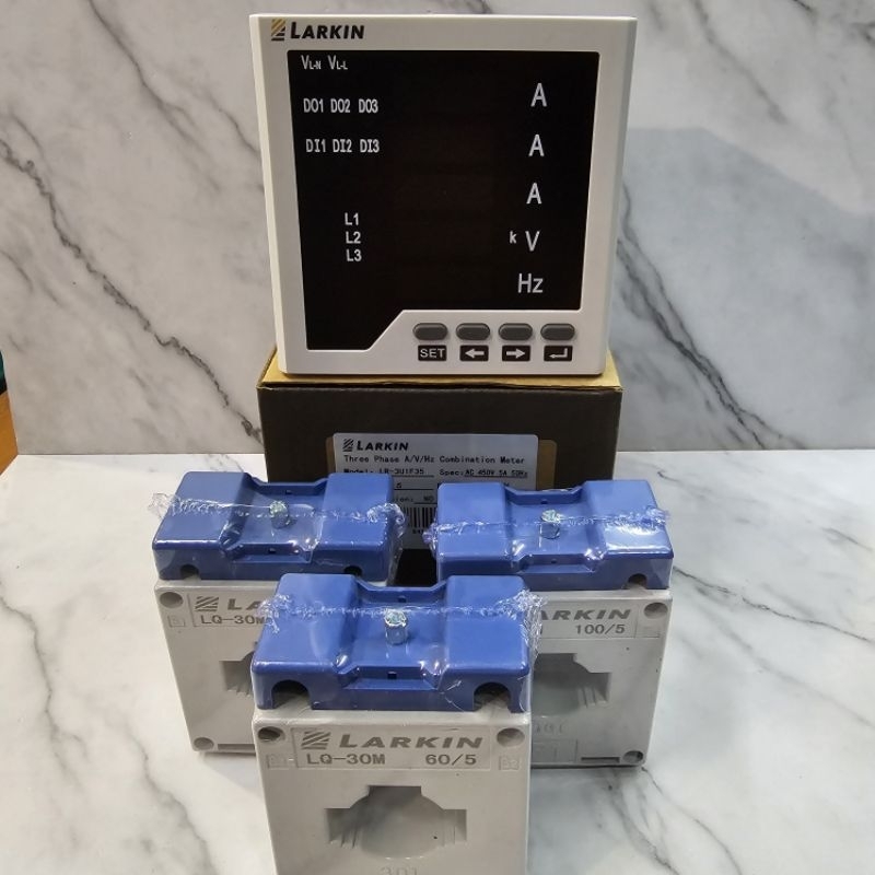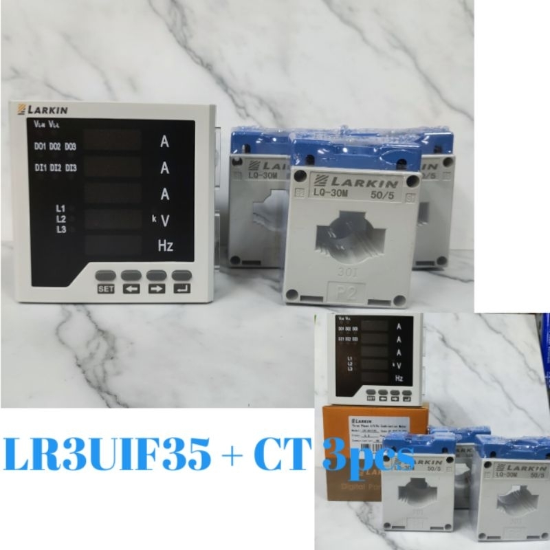 Promo Paket Larkin Digital Panel Meter LR-3UIF35+CT 3pcs 3P 5Row AVHZ - 250A