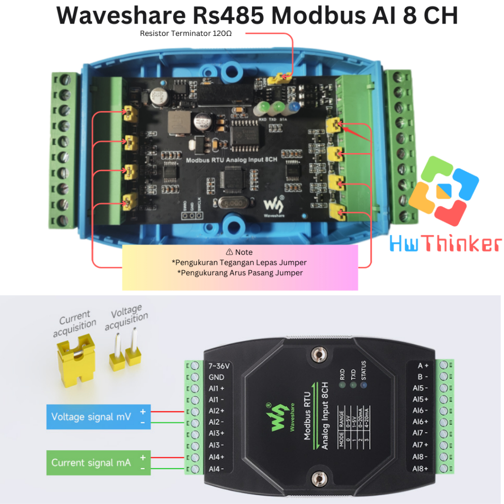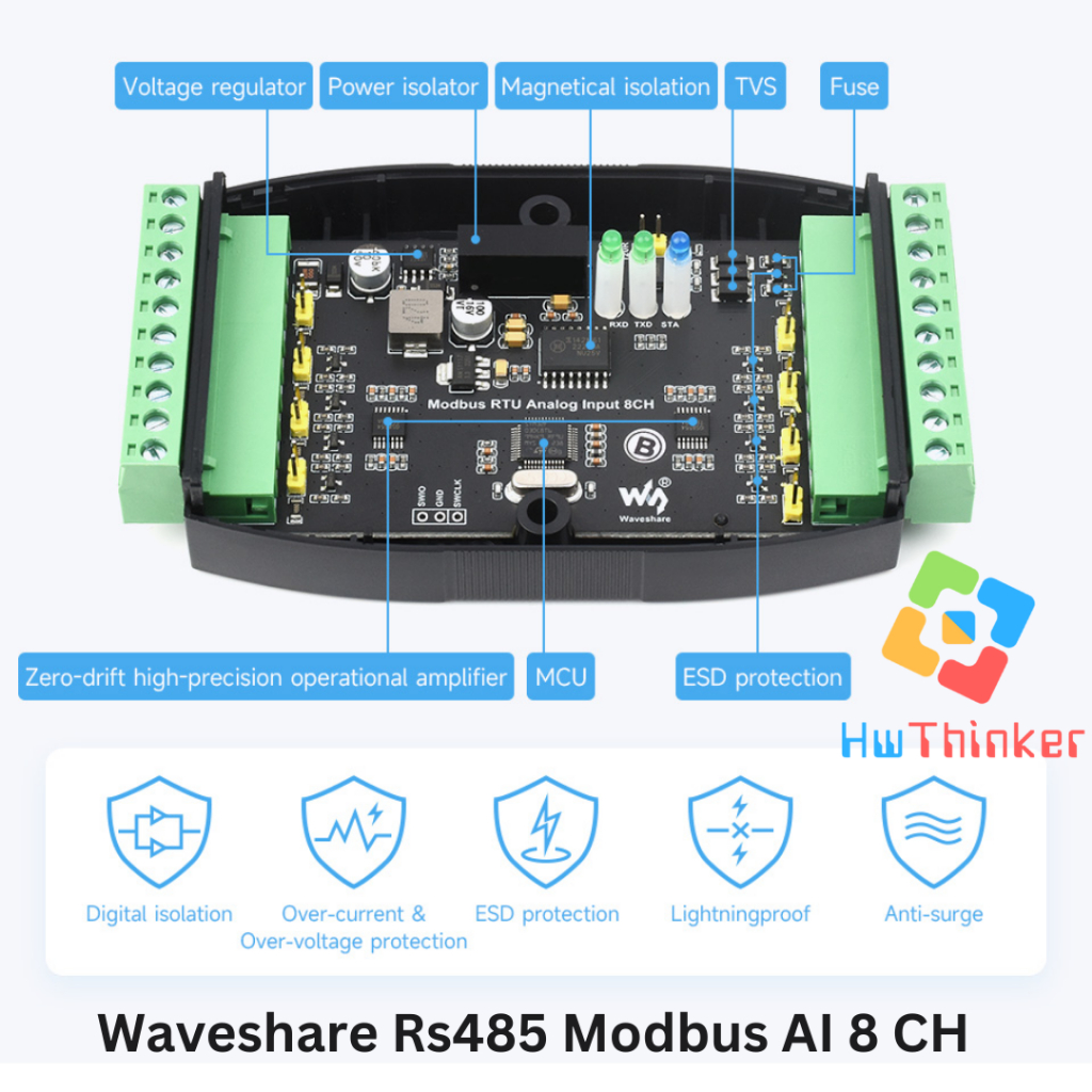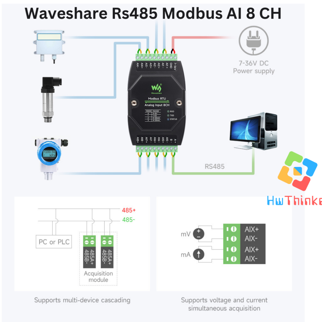 Waveshare Modbus RTU RS485 8 CH Analog Input 8AI Isolated Current 0-20mA 4-20mA DIN RAIL Industrial Grade Analog Remote