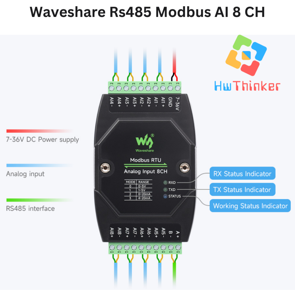 Waveshare Modbus RTU RS485 8 CH Analog Input 8AI Isolated Current 0-20mA 4-20mA DIN RAIL Industrial Grade Analog Remote
