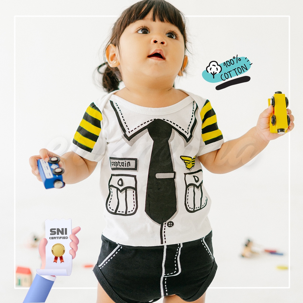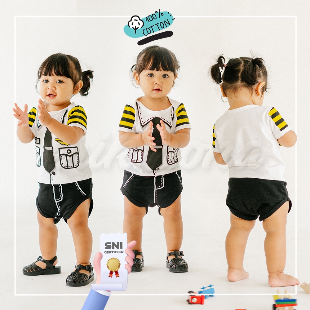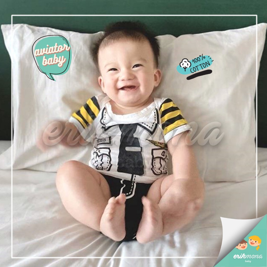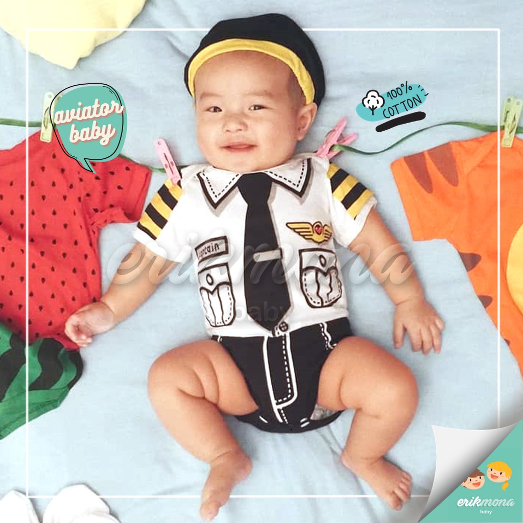 Baju Bayi Laki Laki Perempuan Pilot Aviator Jumper Anak Cowok Cewek Karakter Lucu + Topi Usia 0-12 Bulan