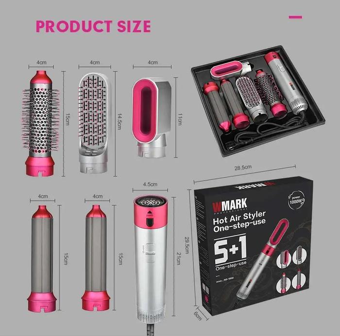 WMARK NG-1000 HOT AIR STYLER 5 IN 1 WMARK NG-1000 BLOWER STRAIGHT COMB CURLING BRUSH CURLER SET WMARK NG1000