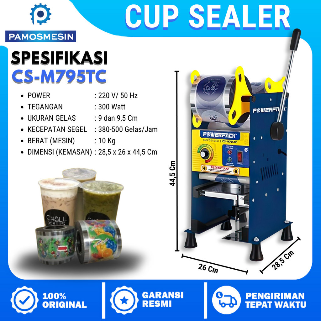 Powerpack Cup Sealer Manual CS-M795TC 14-22 Oz Mesin Press Gelas Plastik Jus Teh Minuman