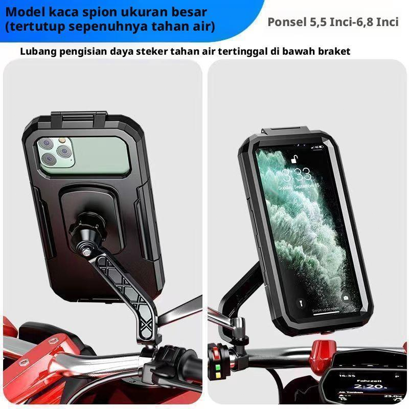 Holder Phone Waterproof 360 Stand Sepeda Motor Anti Air Holder Stang Motor Anti Basah 00050