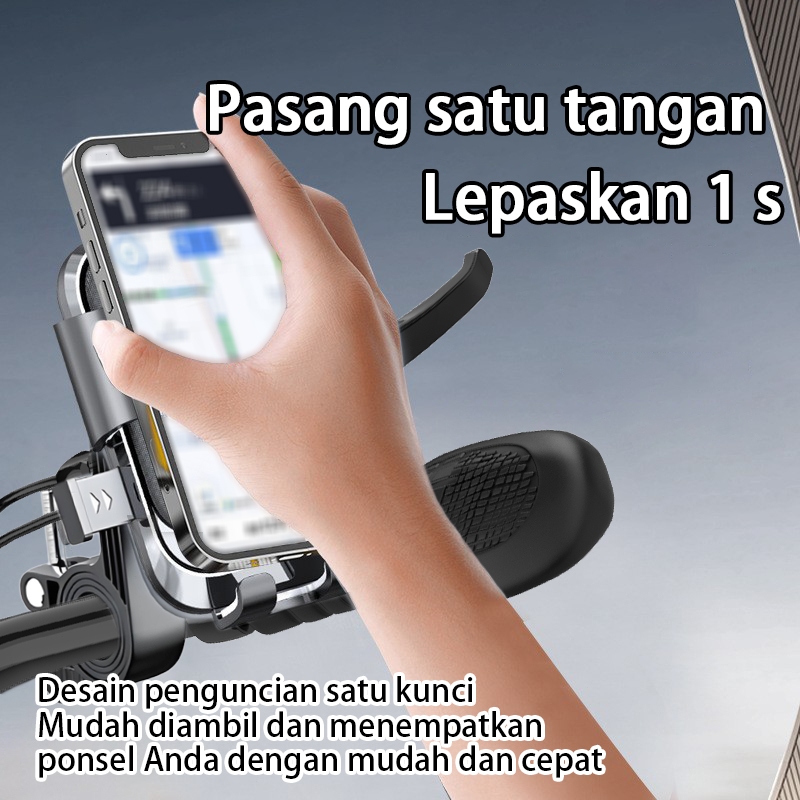 Holder hp gagang sepeda/motor - Penahan ponsel anti getar & anti slip, universal untuk sepeda, motor, skuter (GPS naviga