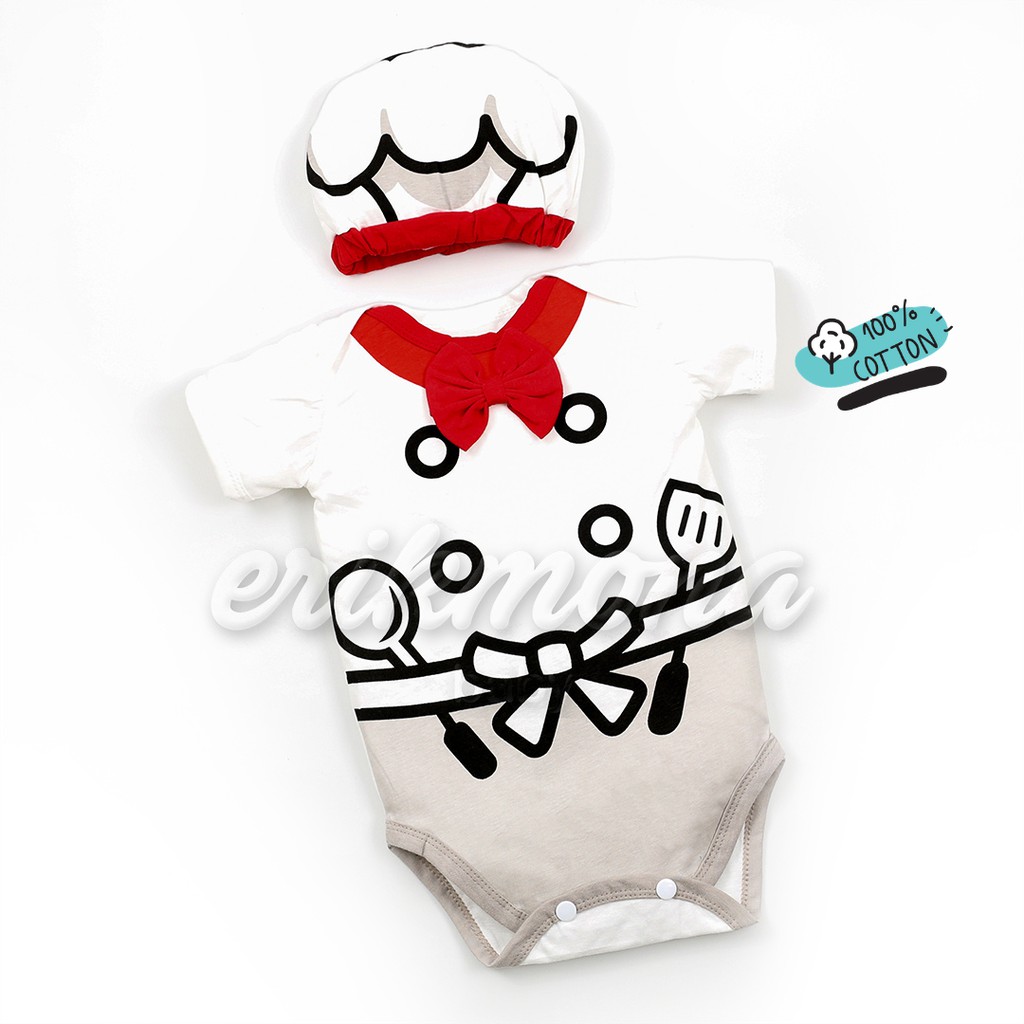 Jumper Bayi Laki Laki Perempuan Jumper Baby Cowok Cewek Lucu Karakter Chef Koki + Topi Usia 0 - 12 Bulan