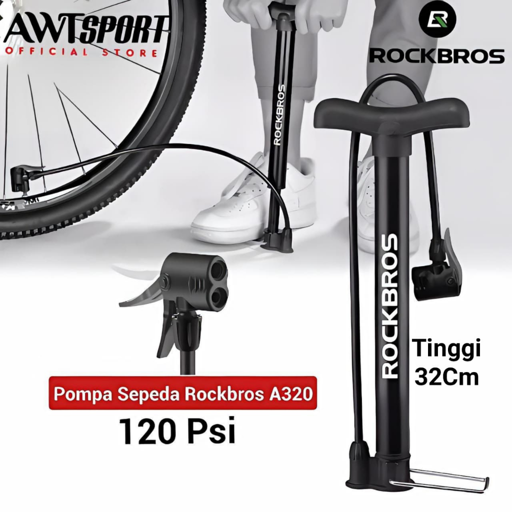 ROCKBROS Pompa Sepeda Motor Ban Bola Basket Kaki A320 120 Psi Bike Air Pump Portable