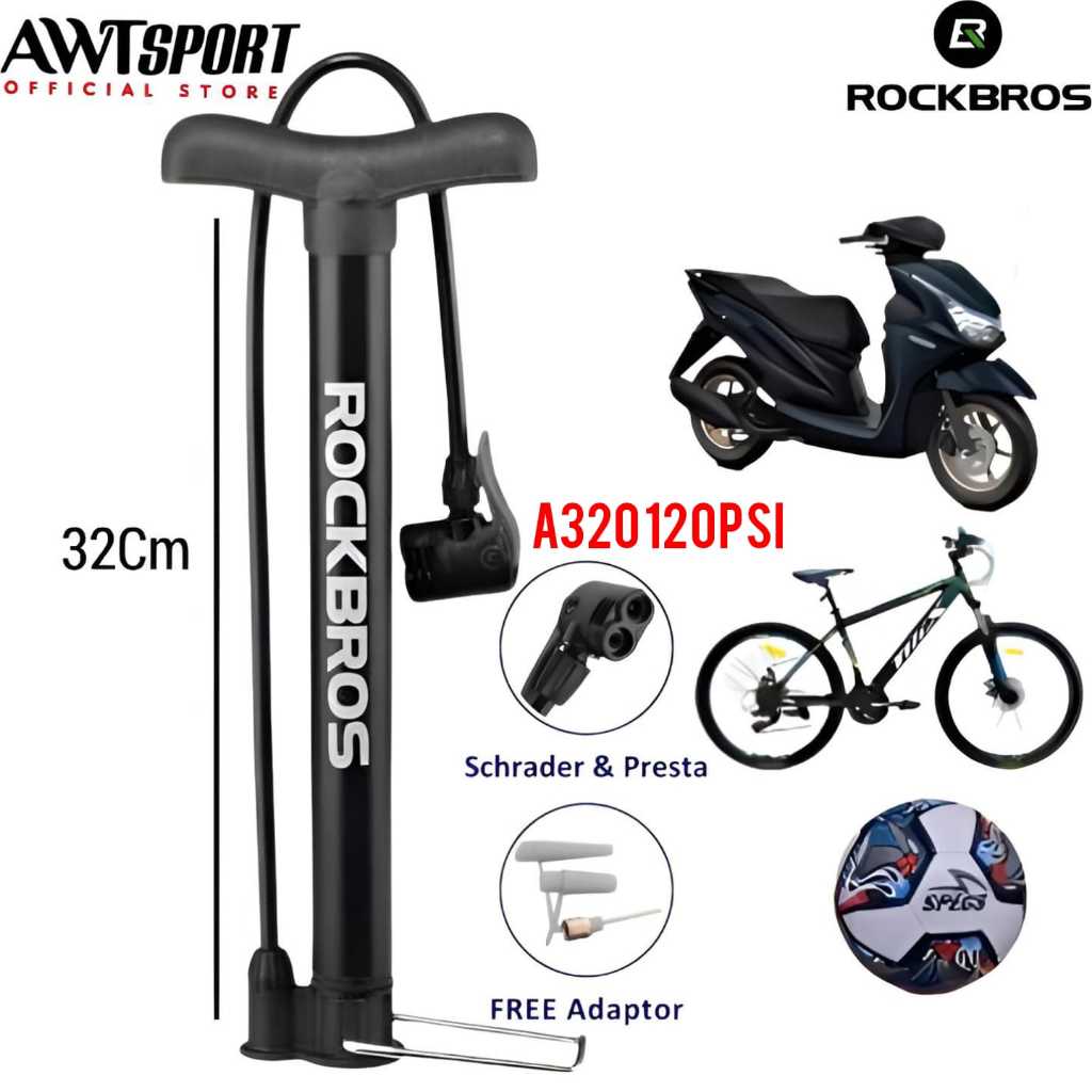 ROCKBROS Pompa Sepeda Bola Ban Motor 120 Psi A320 Mainan Kolam renang anak Bike Air Pump Alluminuim
