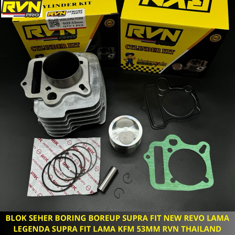 RVN CYLINDER BLOK SEHER BORING KOMPLIT BORE UP SUPRA FIT NEW/OLD REVO LAMA LEGENDA SUPRA FIT LAMA KFM 53MM 53 MM BLOCK SEHER BORUP FREE PAKING ORIGINAL RVN THAILAND | ORCA RACING