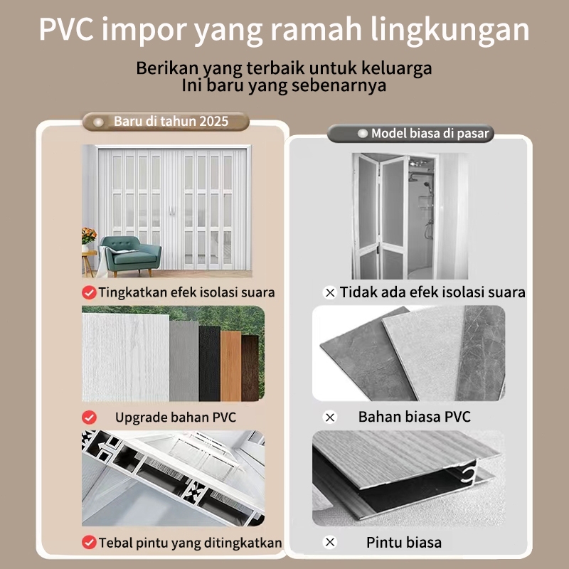 Pintu Lipat Pvc Folding Door pintu kamar mandi PVC Pintu Lipat Geser Tidak perlu pengeboran Mudah dipasang ukuran :195C