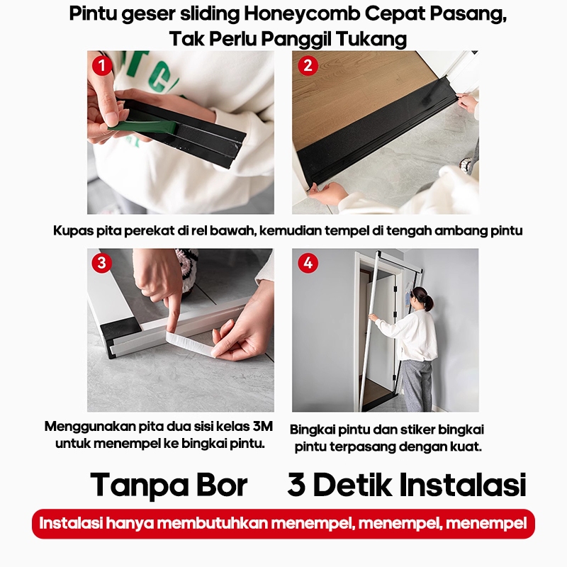 Pintu lipat geser sliding Honeycomb Anti Karat pintu lipat geser sunyi kamar mandi penyekat ran Pintu tersembunyi dapat
