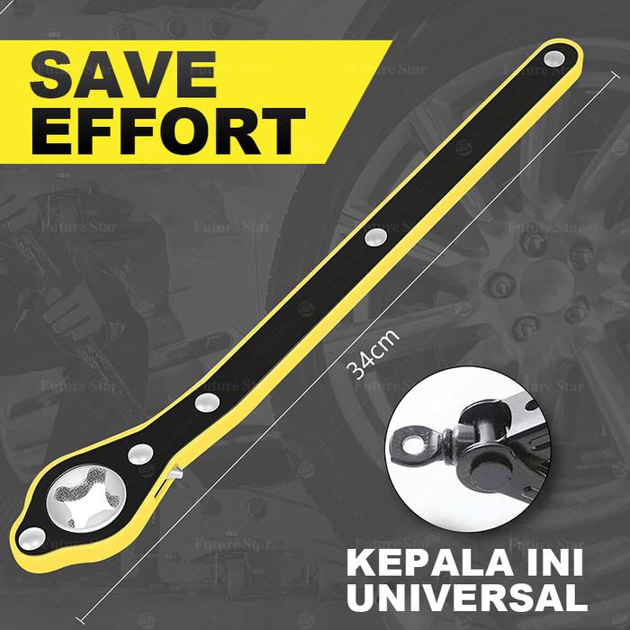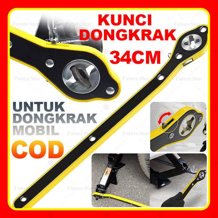 KUNCI PAS DONGKRAK MOBIL / UNIVERSAL RATCHET CAR JACK WRENCH ROCKER JEMBATAN REPAIR TOOLS 340MM PANJANG FOR SCISSOR JACKSTAND, FORWARD AND REVERSAL KNOB DESIGN - KUNCI