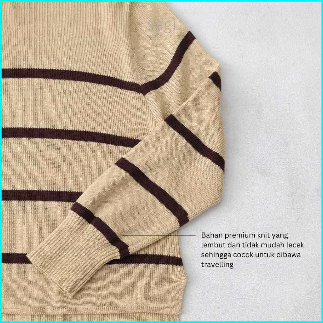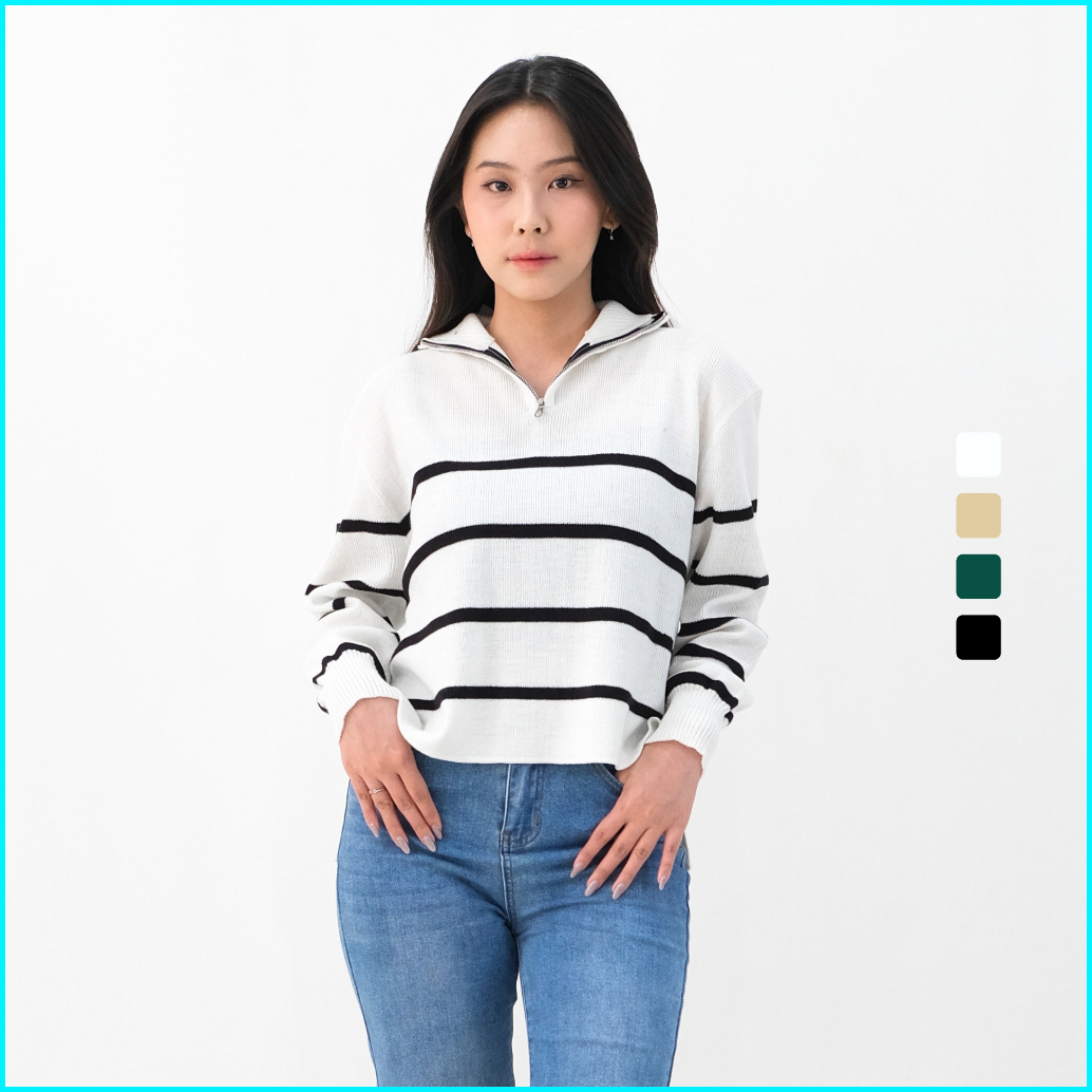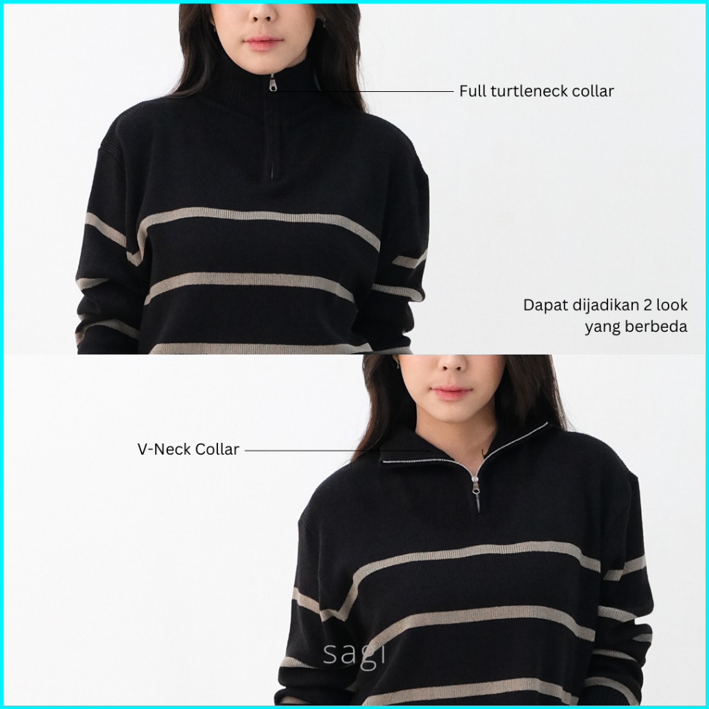 Sagi Lisbon Stripe Upper Zip Sweater Korean Crop Jaket Rajut Knit Atasan Wanita Formal Casual