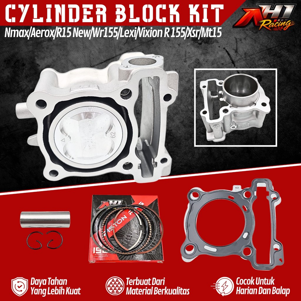 BORING BLOCK BLOK SEHER BORE UP NMAX AEROX WR 155 R15 V3 V4 VVA VIXION R 155 MT15 XSR LEXI NMAX NEW AEROX NEW 62 63 65 MM AH1 RACING