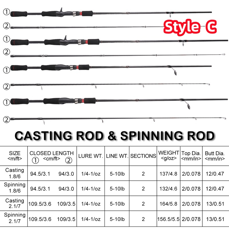 Daiwa fishing rod Joran Pancing Carbon Sutet 2 Bagian Tongkat Pancing Putar/Casting M Power 1.65/1.8M/2.1M