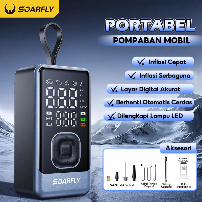 SOARFLY Pompa Ban Mobil Motor Electric Portable Car Air Pump/ Tire Inflator | Mini Multifungsi 4000mAh Powerbank, LED Di