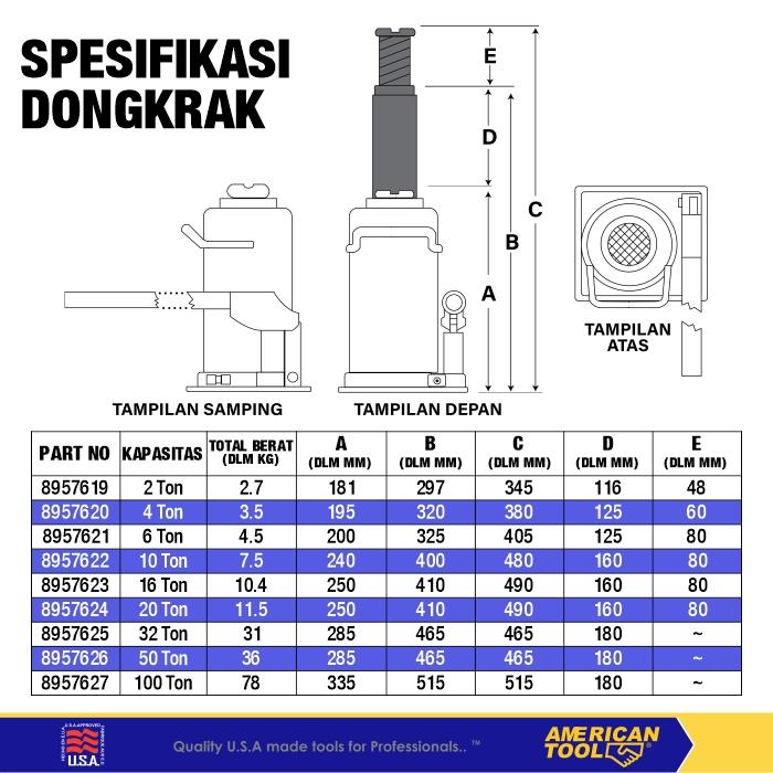 DONGKRAK BOTOL 6 TON / HYDRAULIC BOTTLE JACK AMERICAN TOOL 8957621 - 1
