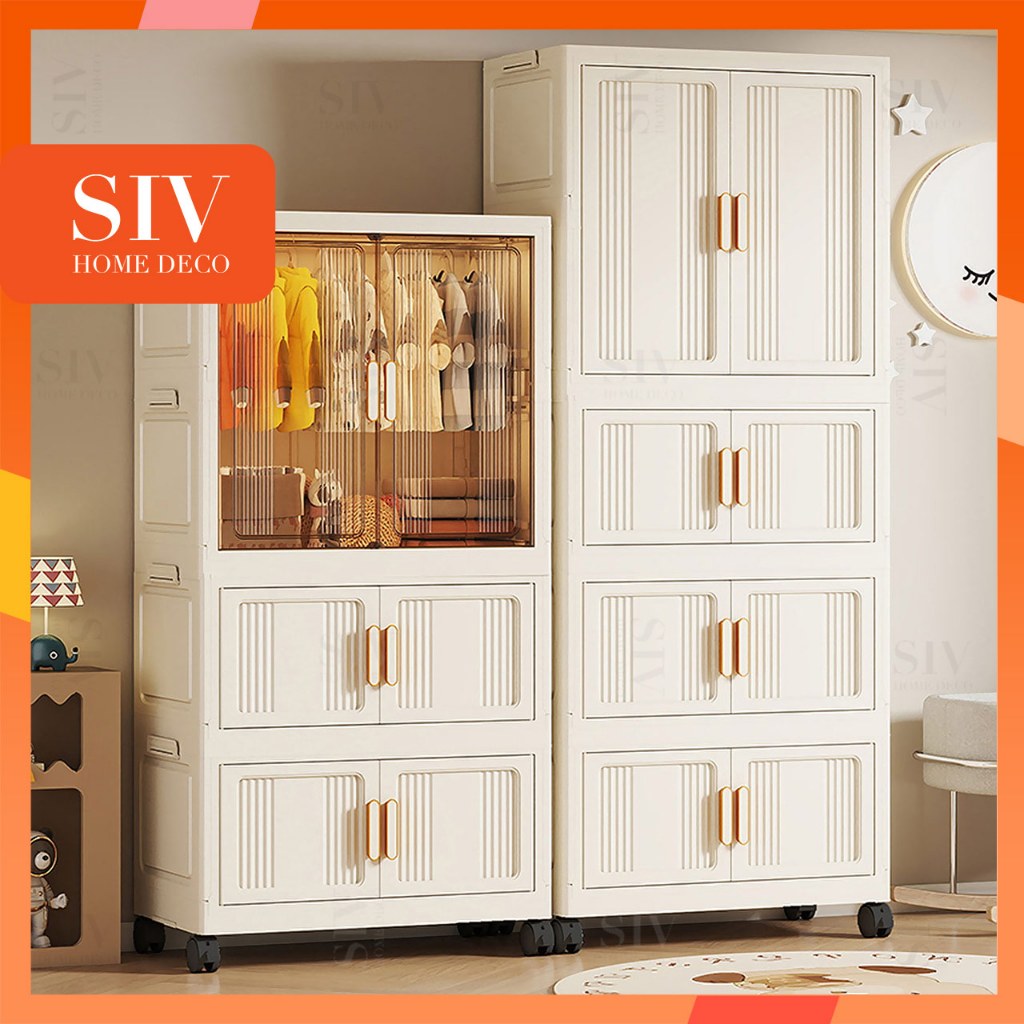 SIV 55-90cm Lemari Baju Bayi Plastik Lemari Pakaian Estetik Minimalis Anak Lemari Plastik Susun