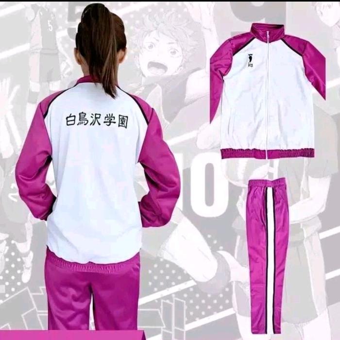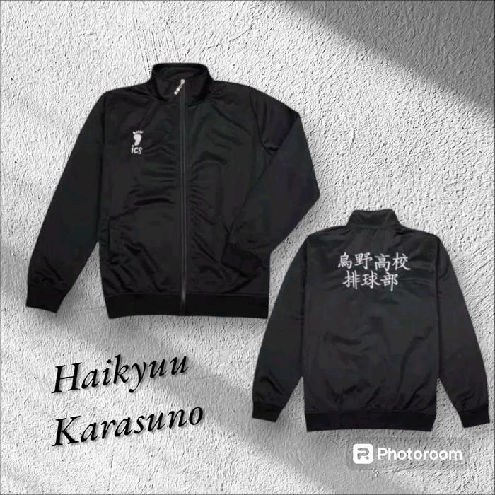 JAKET ANIME HAIKYUU KARASUNO ICS BORDIR OUTER BASEBALL PRIA TRACTOP SUIT VARSITY CASUAL KEREN UNISEX - HITAM, M