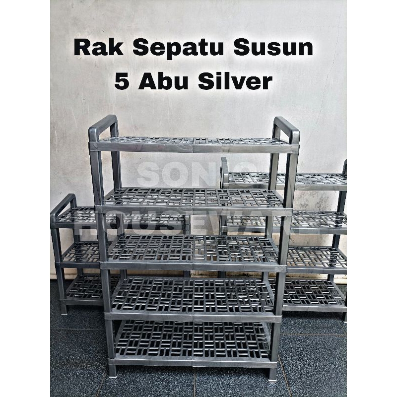 Rak Sepatu 5 Susun 5 Abu Silver Cosmic Calista Rak Serbaguna Datar Rak Barang Tempat Sepatu Shoes Rack Plastik Palembang