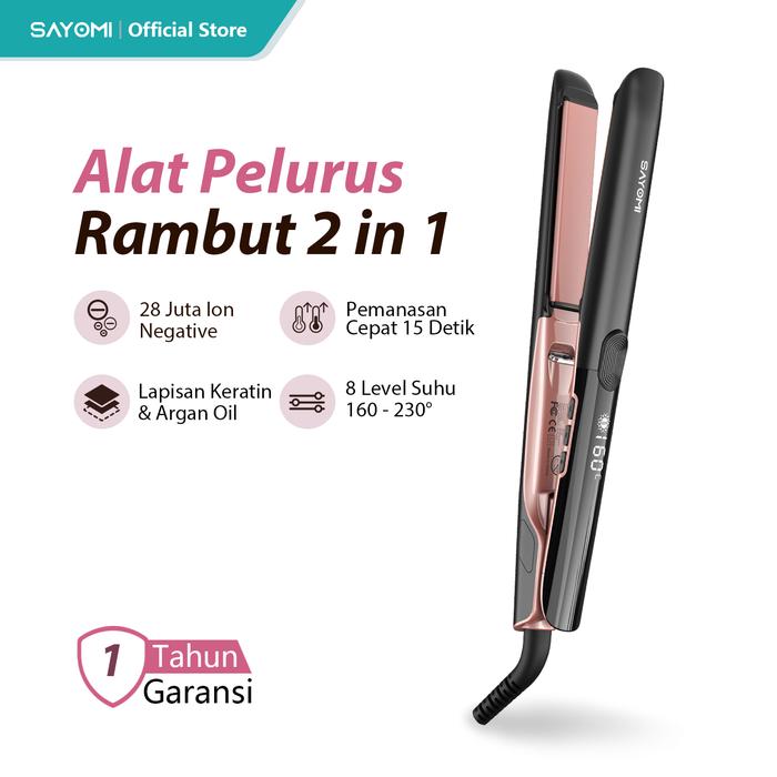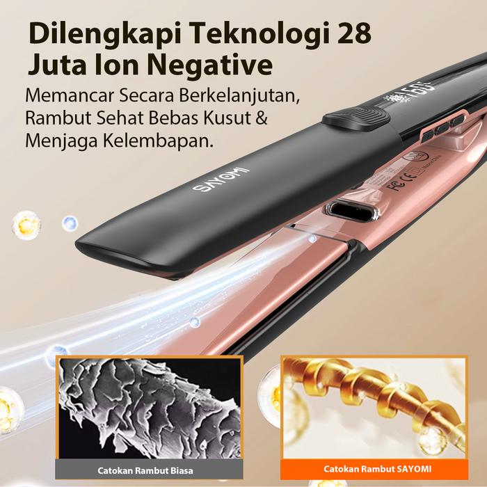 SAYOMI CATOKAN RAMBUT 2 IN 1 KERATIN IONIC 3D FLOATING CHERAMIC GLIDE LURUS CURLY TAHAN LAMA FAST HEATING 28 JUTA ION NE