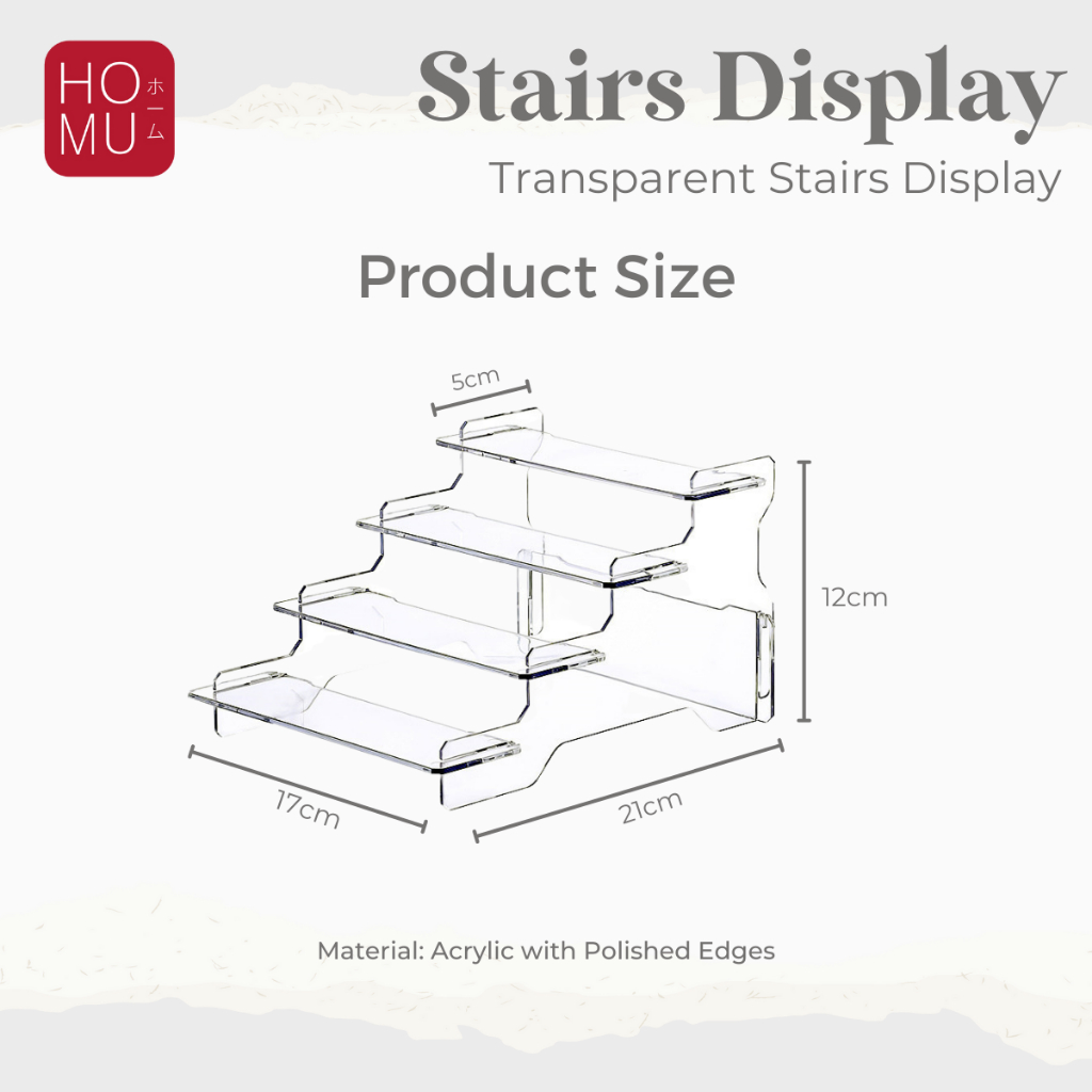HOMU Stairs Display Transparent Acrylic Action Figure Stand 4 Susun Tingkat Rak Pajangan Akrilik