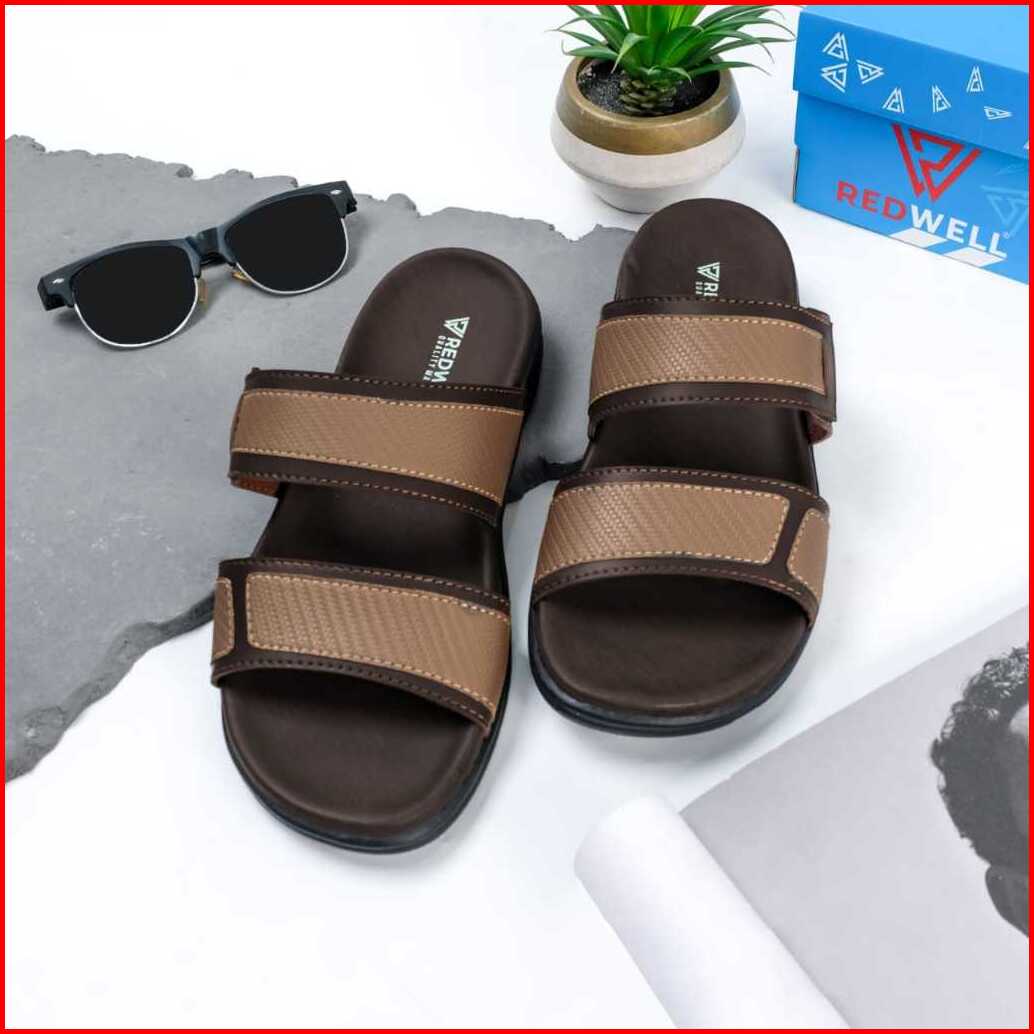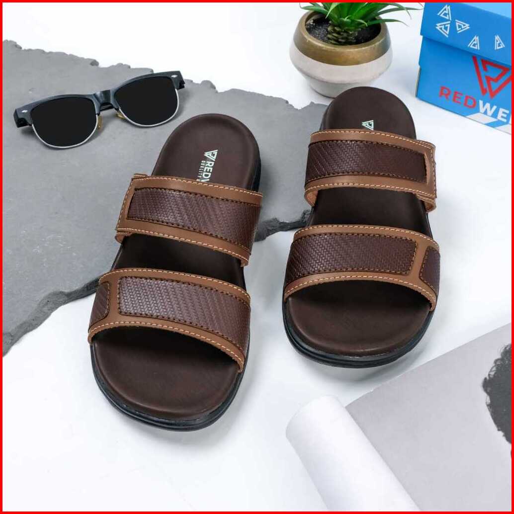 Sandal Selop Pria Redwell- Diego 07003 Casual Size 39 40 41 42 43 Warna Hitam Tan Coklat Tua Bahan Kulit Sapi Anti Slip
