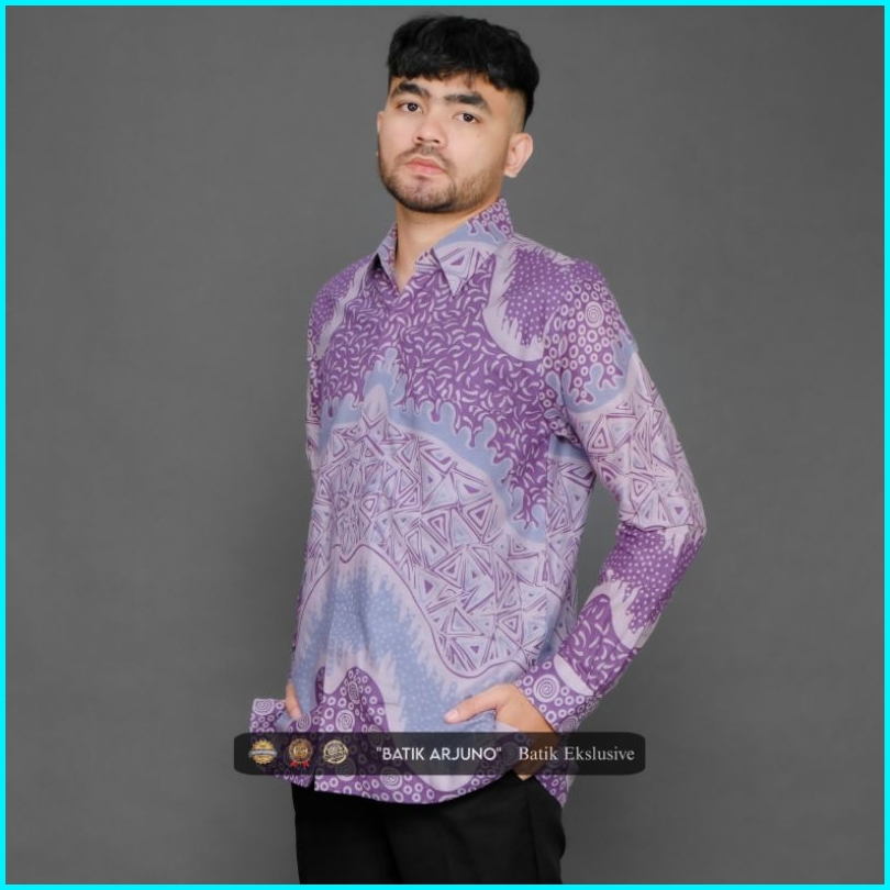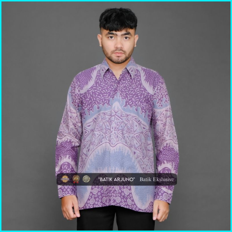 Kemeja Baju Batik Pria Lapis Furing Lengan Panjang Katun Taro Lilac