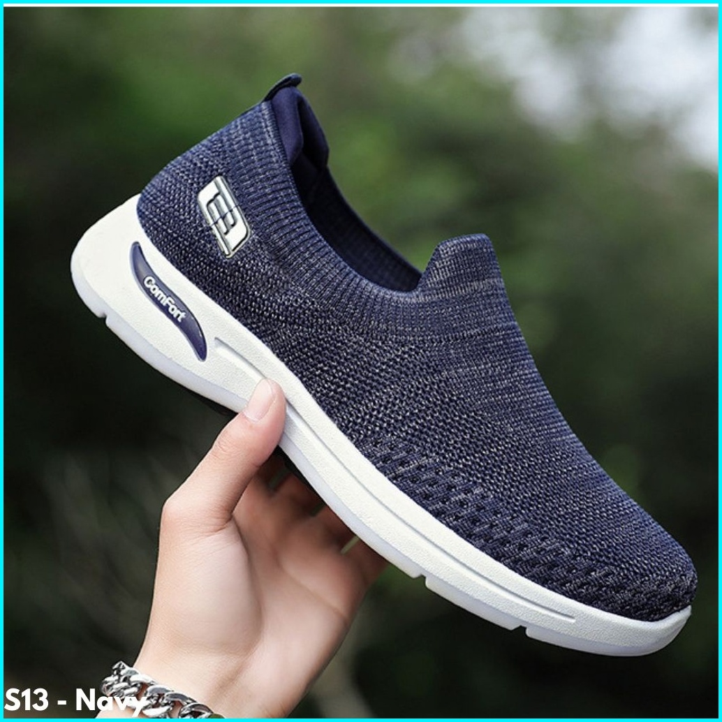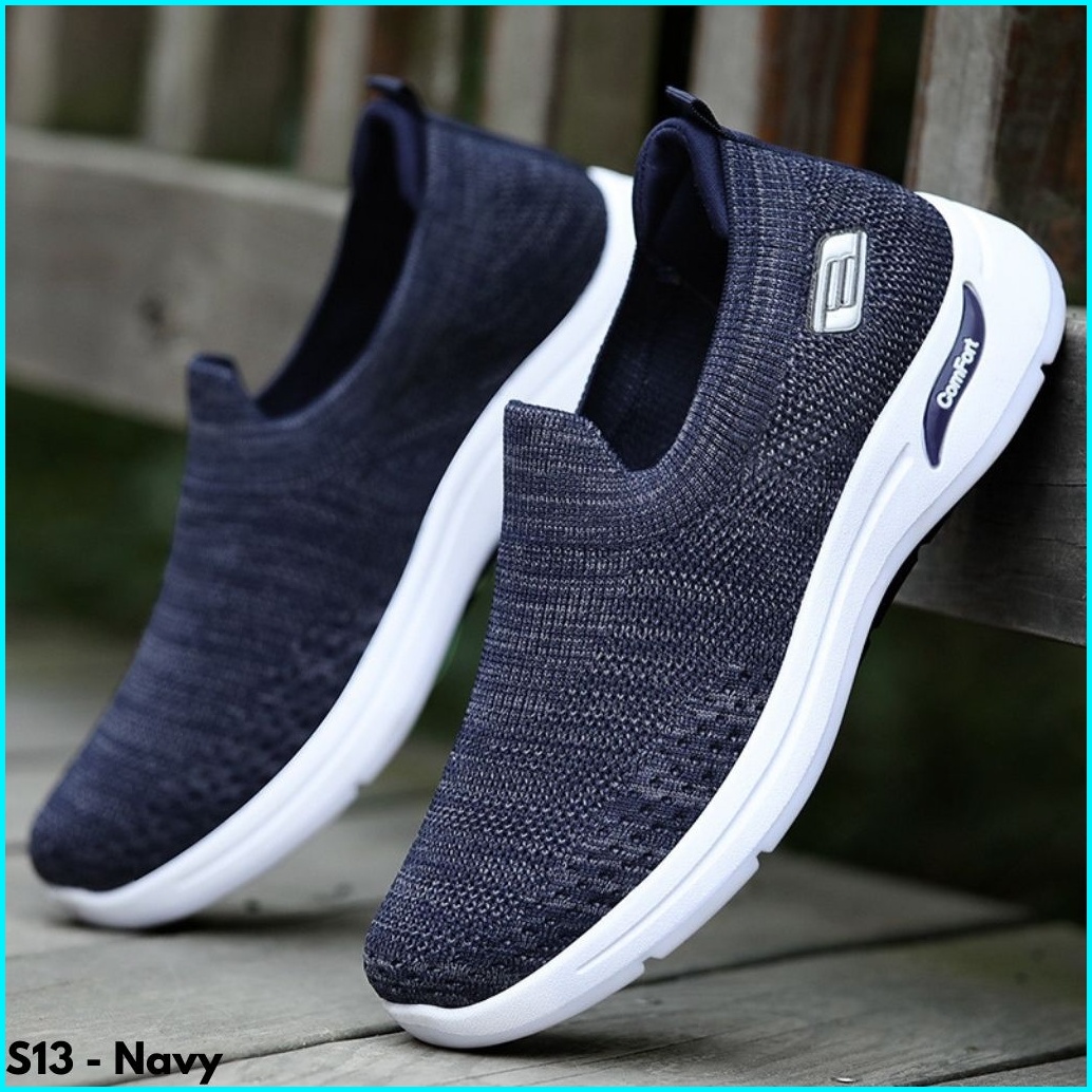 Sepatu Sneakers Pria Tanpa Tali Import Branded Nyaman Lari Olahraga Anti Slip S13