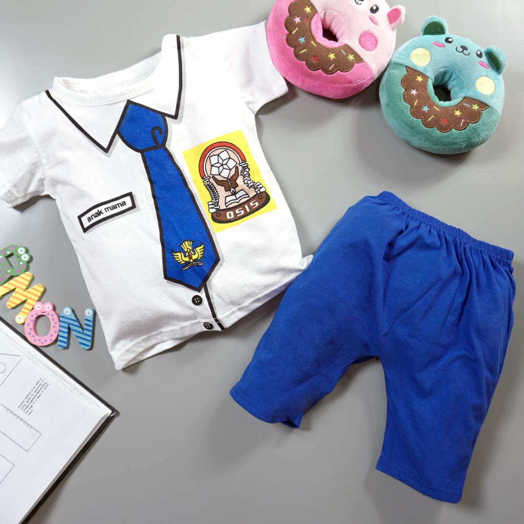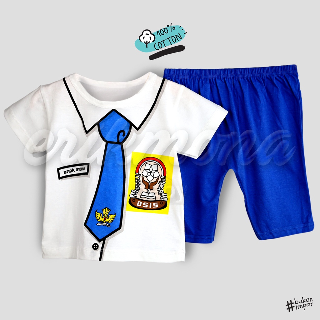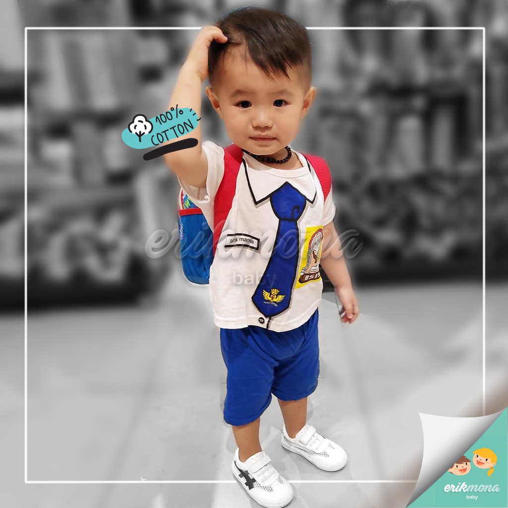 Setelan Anak Laki Laki Perempuan Baju Anak Cowok Cewek Lucu Seragam SMP + Celana Usia 1 - 3 Tahun