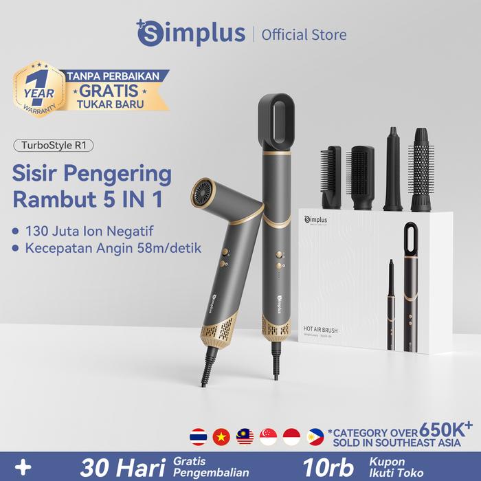 【SUPER PROMO DOUBLE SUBSIDI】SIMPLUS PINK - AIRIS HAIR DRYER BRUSH 5-IN-1 DENGAN 130 JUTA ION NEGATIF MULTIFUNCTIONAL STY