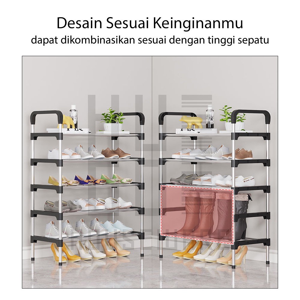 Rak Sepatu Portable Serbaguna 4 dan 5 Tingkat Tempat Sepatu Sandal HUGO