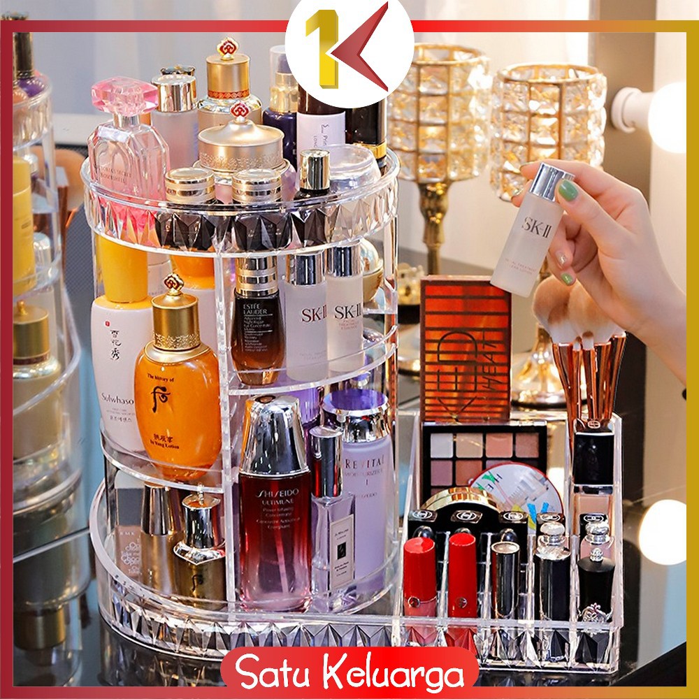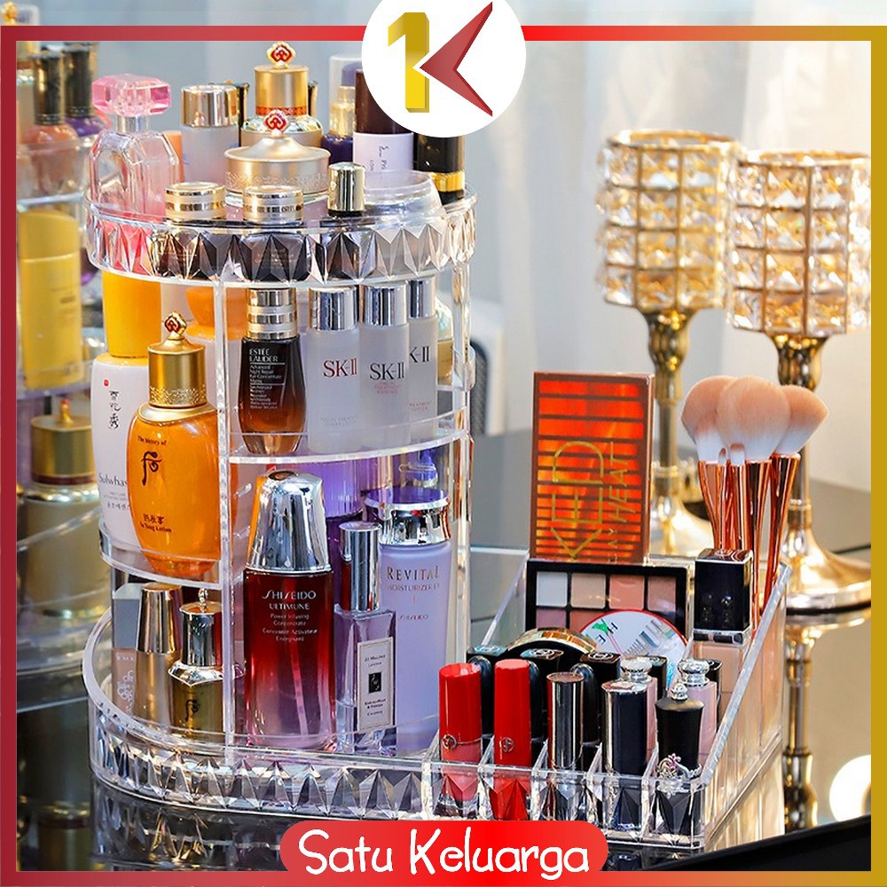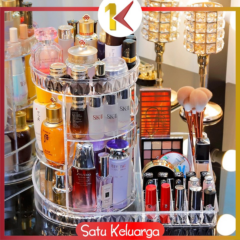 SK-K11 Rak Make Up Kosmetik Petak Acrylic Putar 360 Derajat Diamond Transparan Rak Organizer Makeup