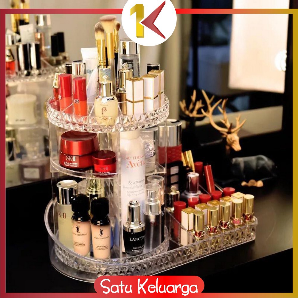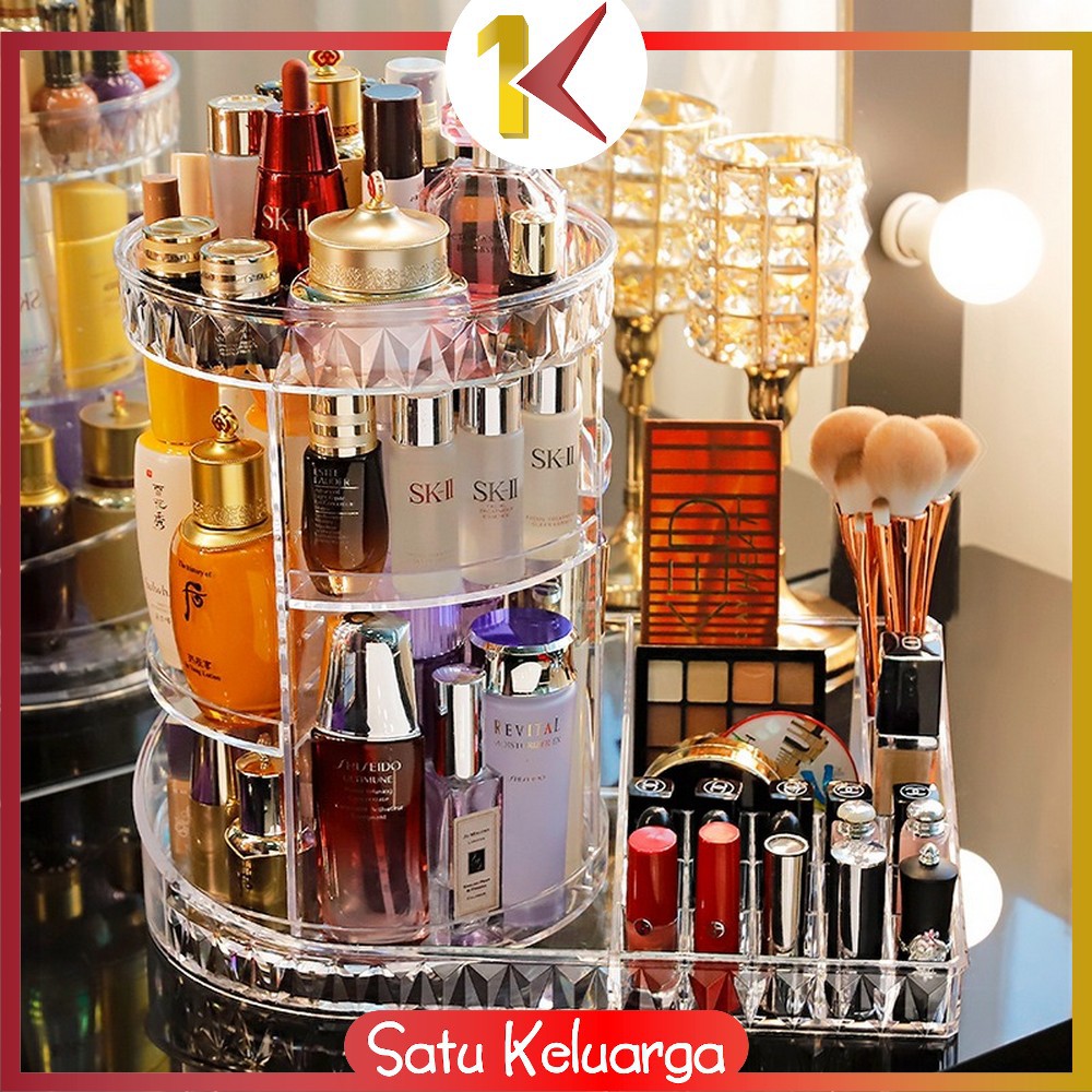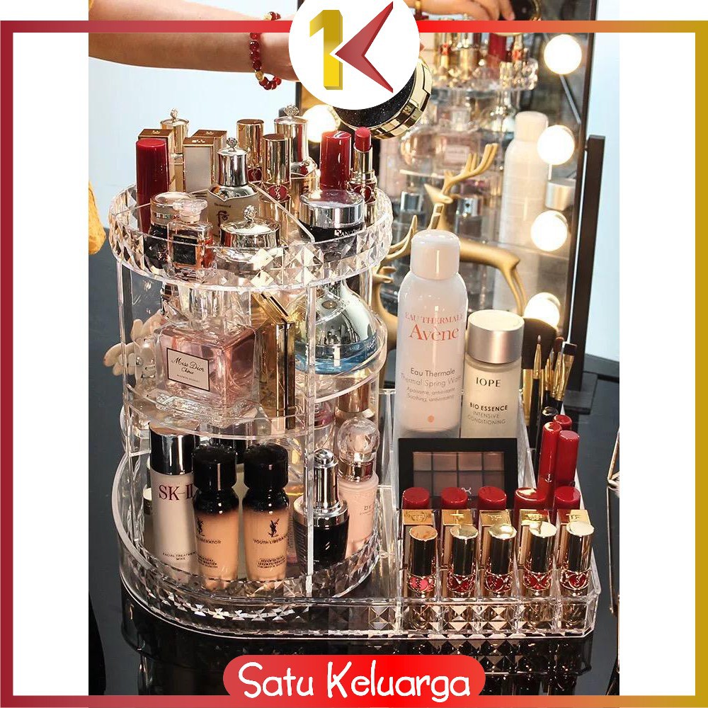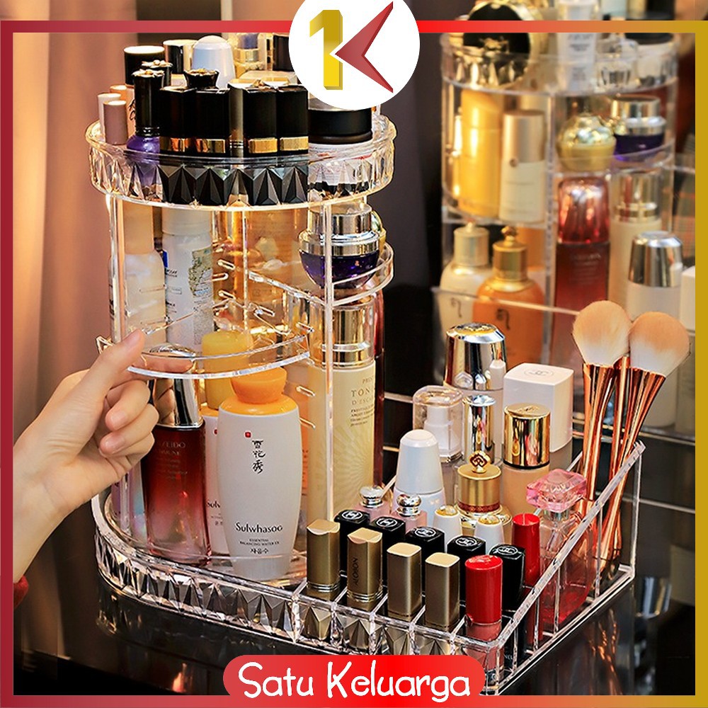 SK-K11 Rak Make Up Kosmetik Petak Acrylic Putar 360 Derajat Diamond Transparan Rak Organizer Makeup