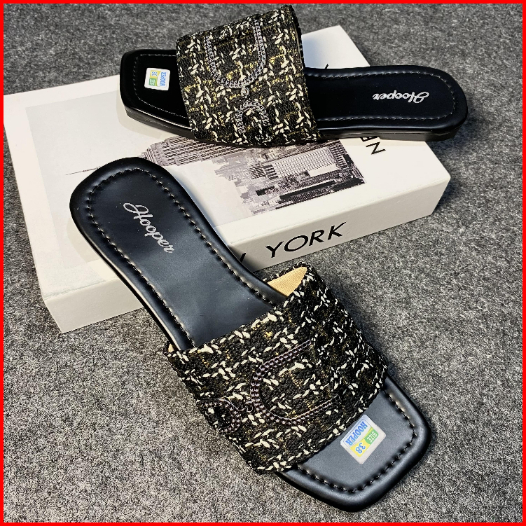 Hooper - Sandal Teplek Flat Sandal Slide Sendal Wanita Rajut Terbaru
