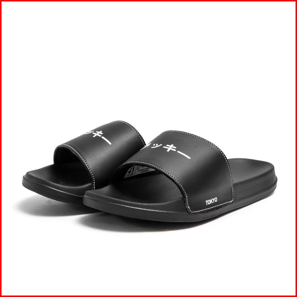 Clearance Kgmn Sandal Slide Pria Wanita Casual Street Wear Sendal Slop Cowok Cewek Slip On Kekinian Extra Empuk - Noire