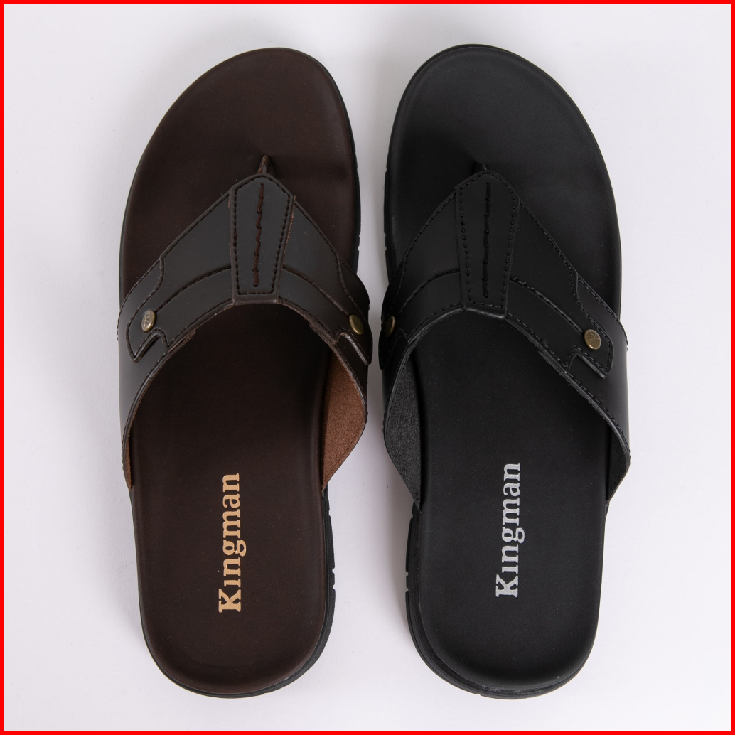 Kingman Sandal Pria Casual Kekinian Nantes Sendal Jepit Hangout Cowok Kulit Kualitas Import - Nt100