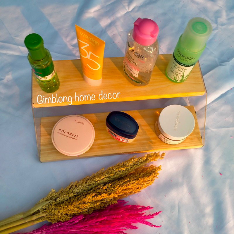 RAK KOSMETIK | RAK SUSUN KAYU RAK KOMBINASI AKRILIK