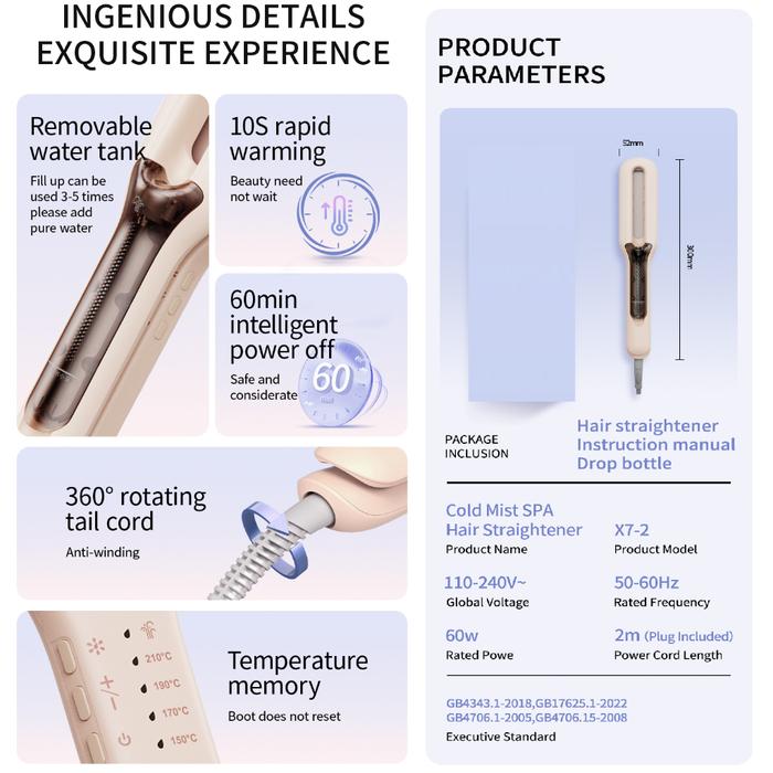 LIVCHIC CATOKAN RAMBUT COLD MIST SPA HAIR STRAIGHTENE 60W DAYA 2 METER 360 SUDUT BELOK JAUH X7 2IN1 STRAIGHTENING SISIR