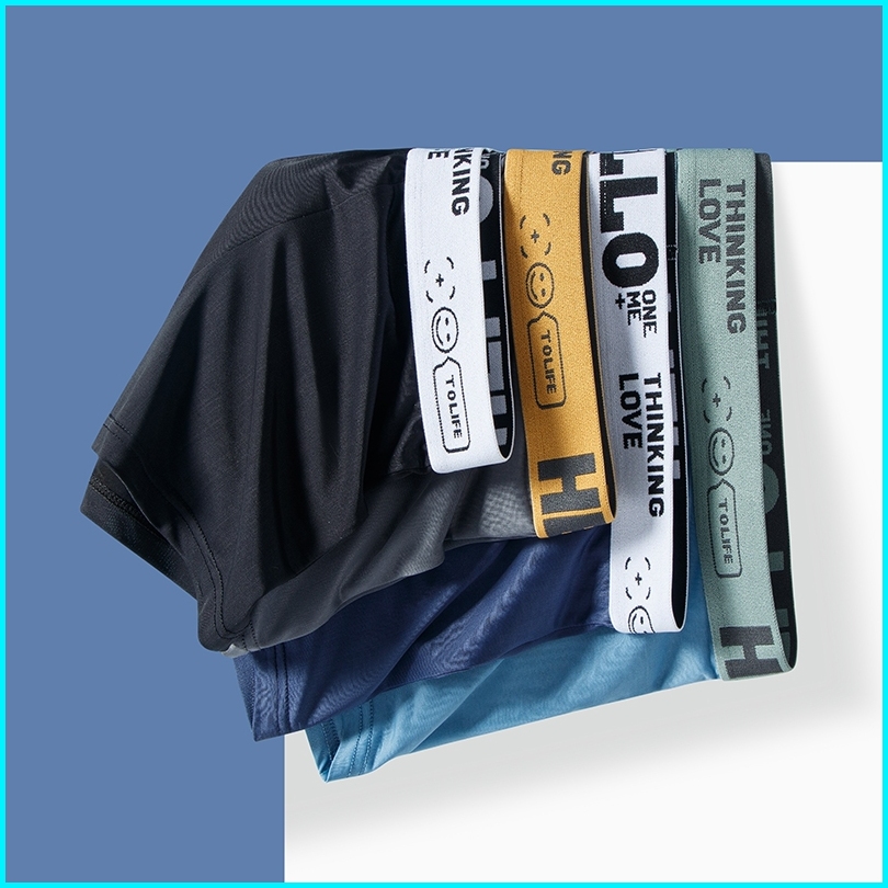 Larunshow Paket 6 Pcs Celana Dalam Boxer Pria Hello Ice Silk Adem Lembut Tipis Antibakteri Cdp006