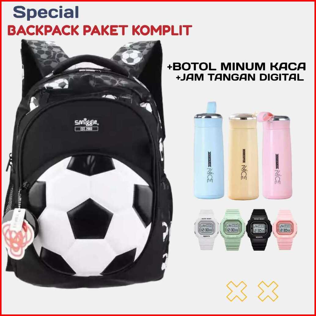 Tas Ransel Anak Laki-laki Motif Bola Tas Sekolah Anak Sd Free Botol Minum Jam Import