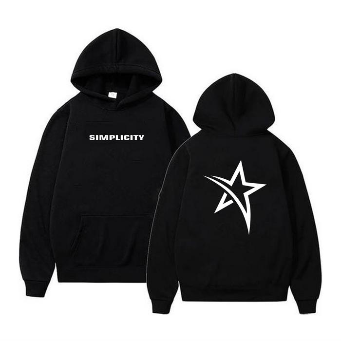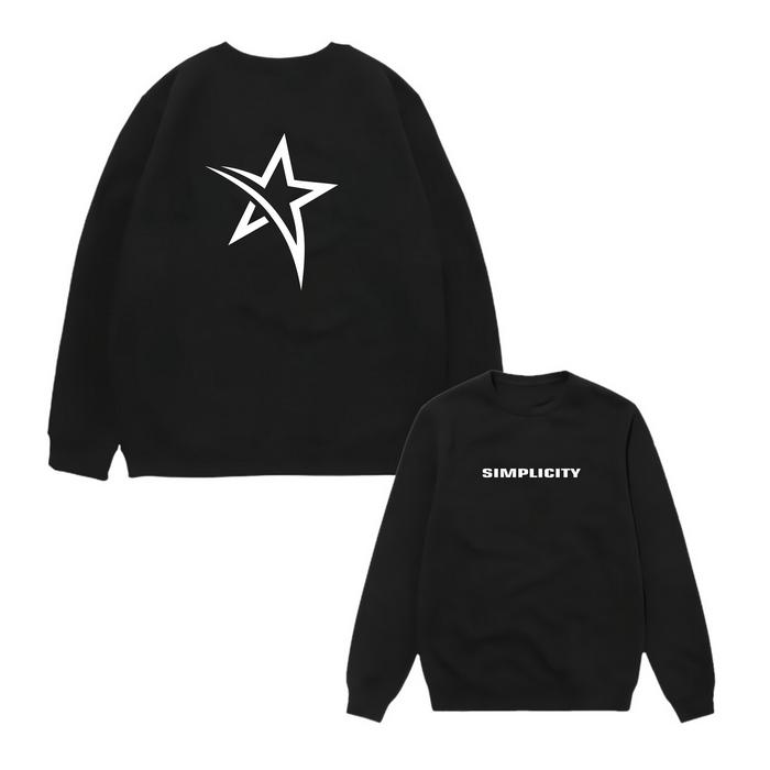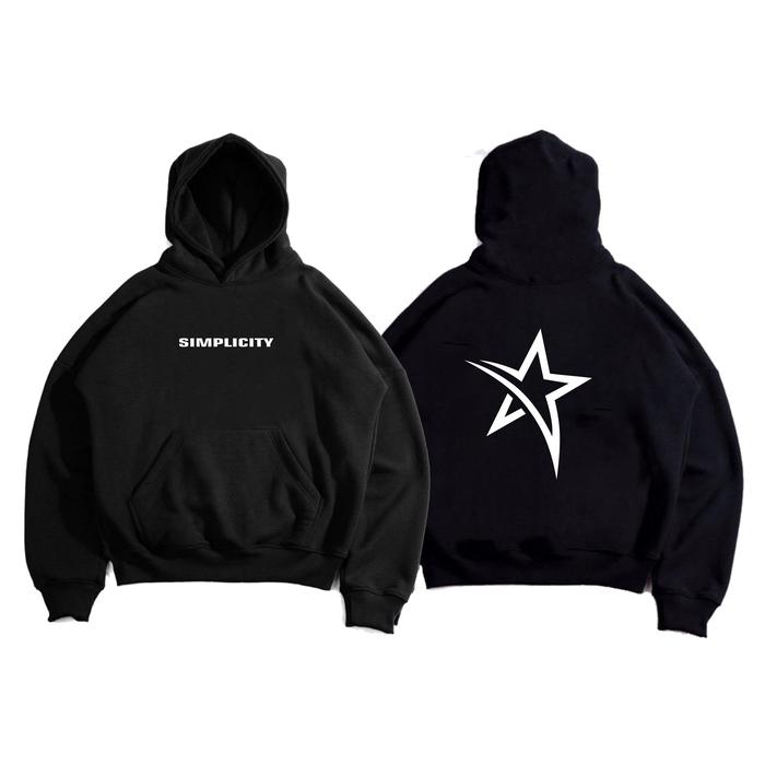 SWEATER HOODIE BOXY CREWNECK SIMPLICITY BISA MENYALA REFLEKTIF MEMANTULKAN CAHAYA BREW ID TEBAL HITAM UNTUK PRIA DAN WANITA - FLEECE PE TEBAL GRAMASI 280 - BOXY OVERSIZE, M
