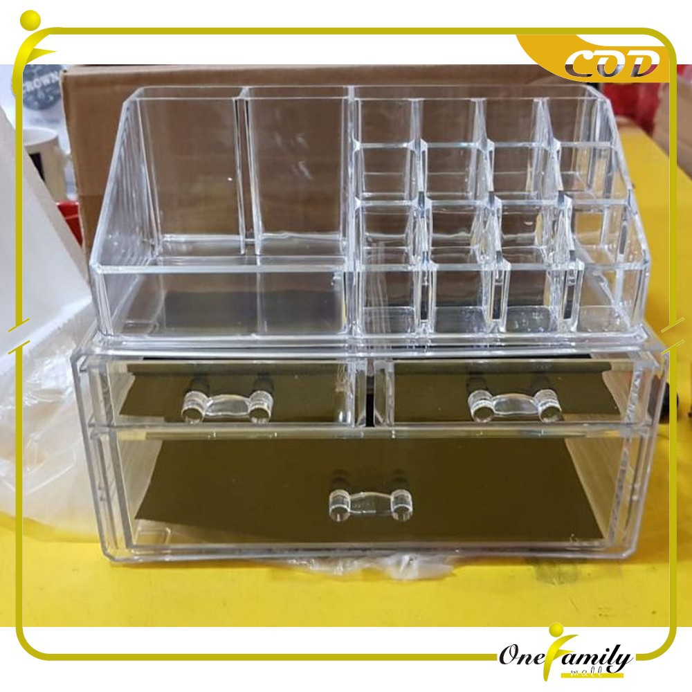 kotak Make Up Acrylic + 3 Laci Rak Kosmetik Organizer Rak Serbaguna Storage Box Cosmetic
