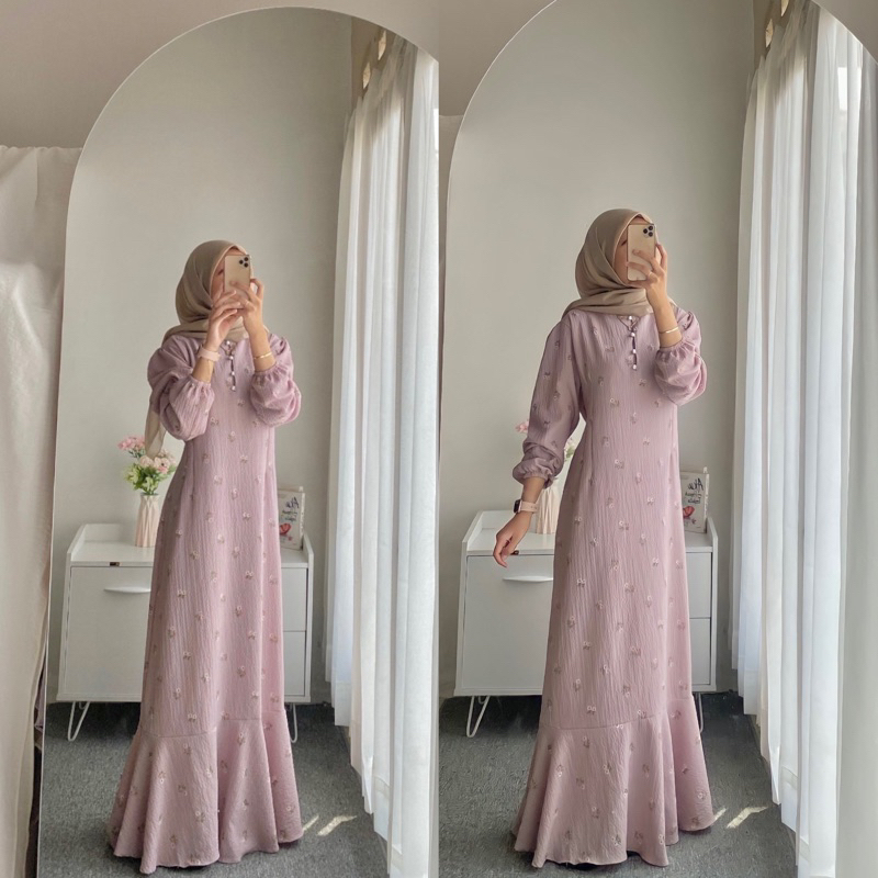 [Mall] Naima korean dress hijab friendly | Gamis motif best seller kancing aktif Tali Kanan Kiri fi to XL