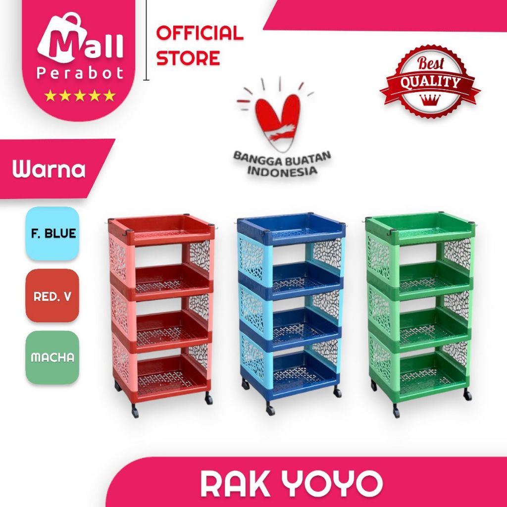 Rak Susun YOYO Hitam Serbaguna 4 Tingkat Dengan Roda | Rak Kamar Mandi Bahan Plastik Portable | Rak Dapur Trolley