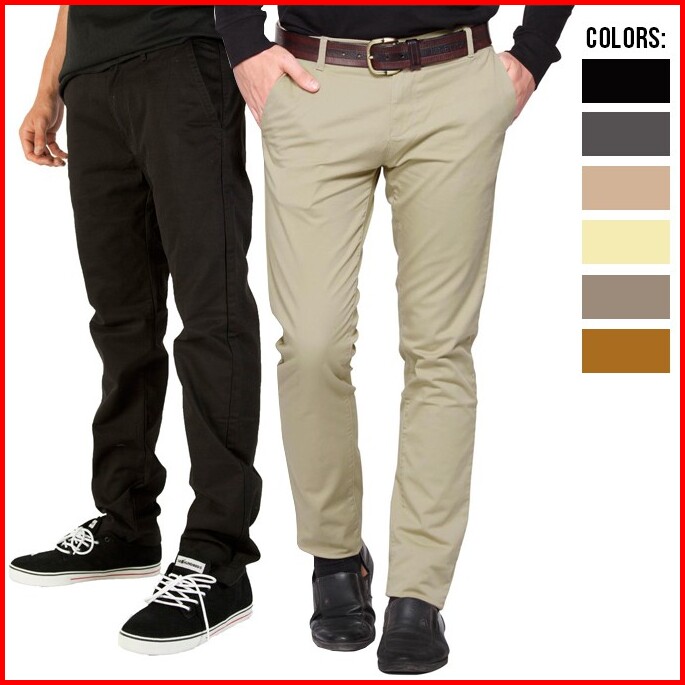 Celana Pria Slimfit Panjang Chino Kerja Harian Hitam Mocca Abu Grey Kream Cream Sz 27 - 36