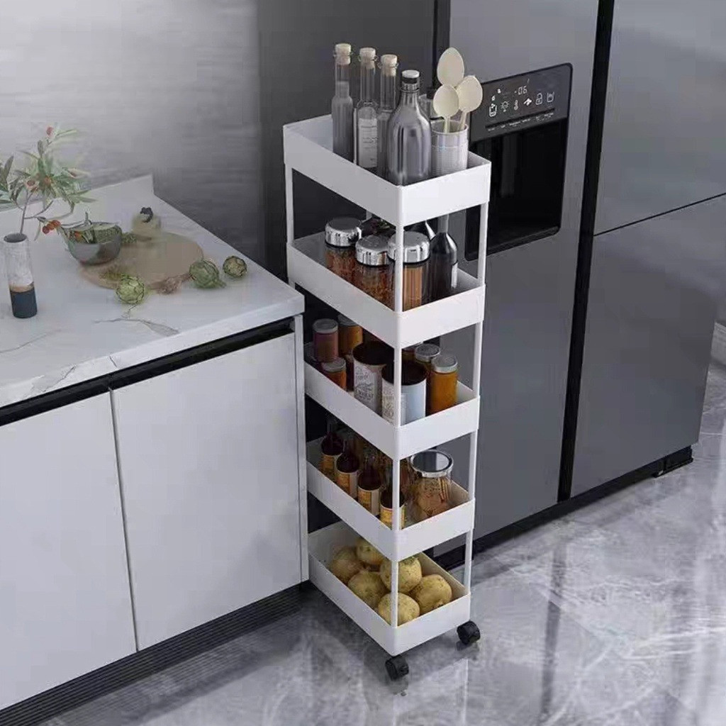 Square rak dapur putih rak kamar mandi rak troli rak susun serbaguna rak dorong 5 tingkat dengan roda