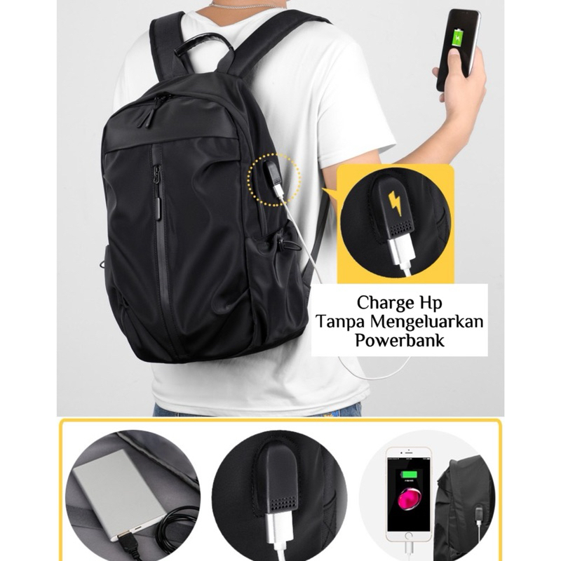 TAS PRIA 70002 - TAS RANSEL NILON POLOS TAS PRIA KERJA KULIAH SEKOLAH TRAVEL HIKING BACKPACK TAS RANSEL LAPTOP - E