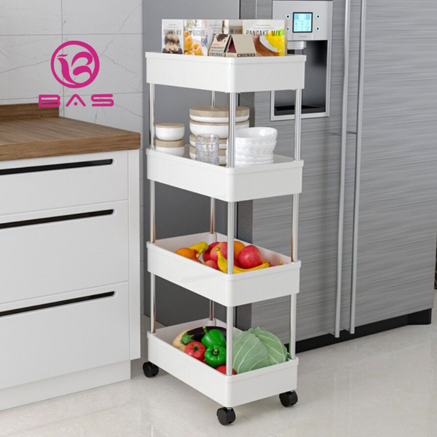 BAS square rak troli rak dapur rak serbaguna 4 tingkat dengan roda