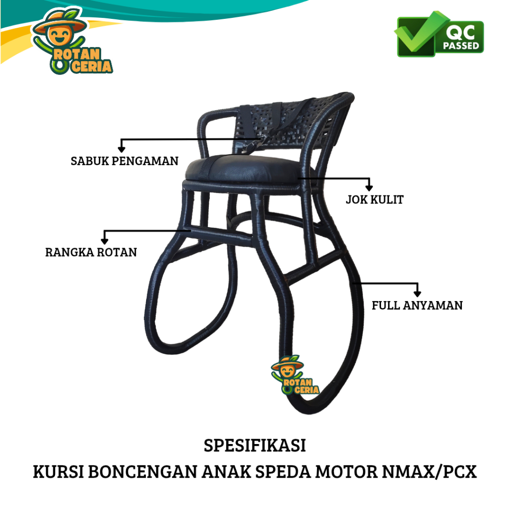 Kursi Boncengan Motor NMAX/PCX untuk Anak Full Anyaman Jok Kulit Gratis Bantal Stang