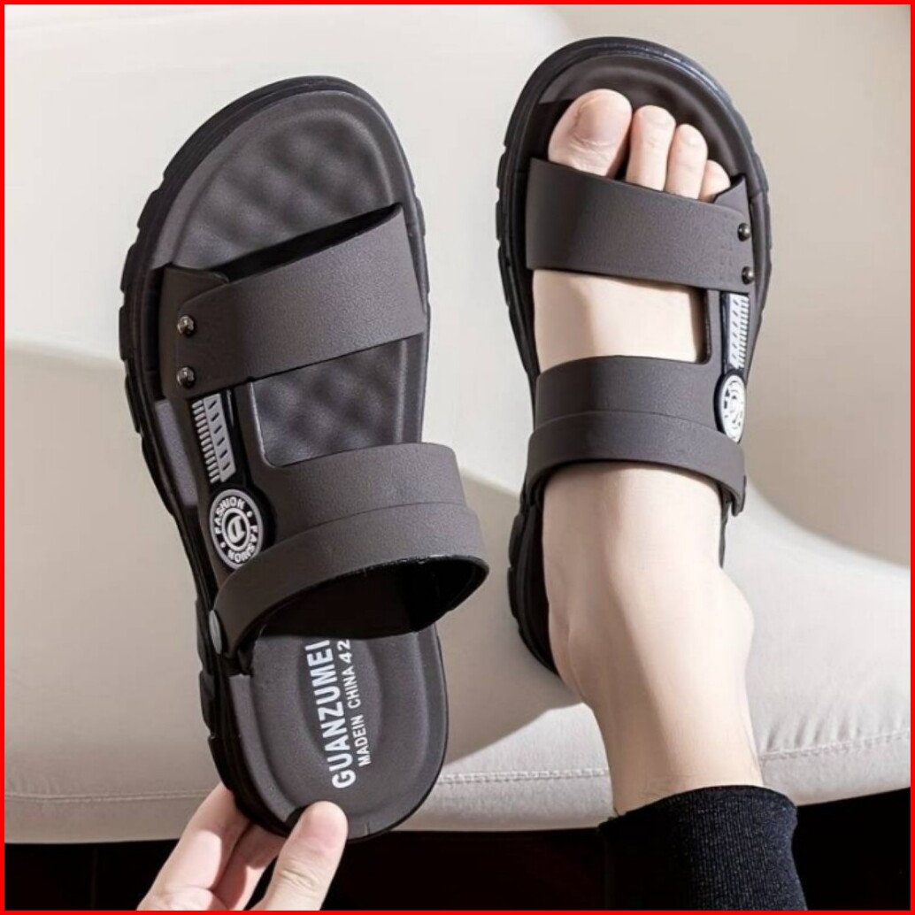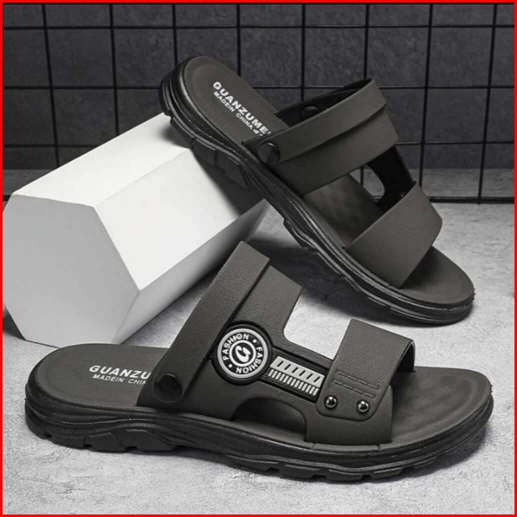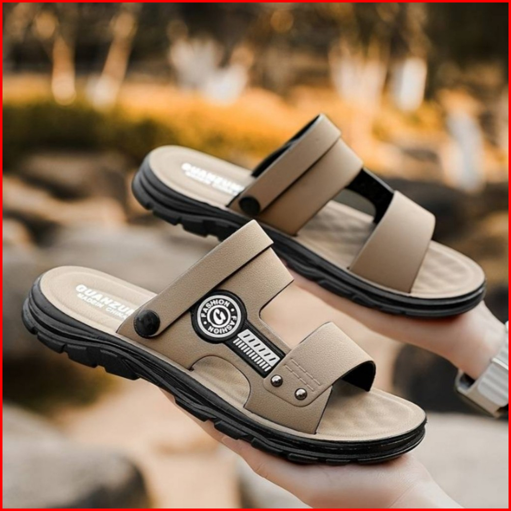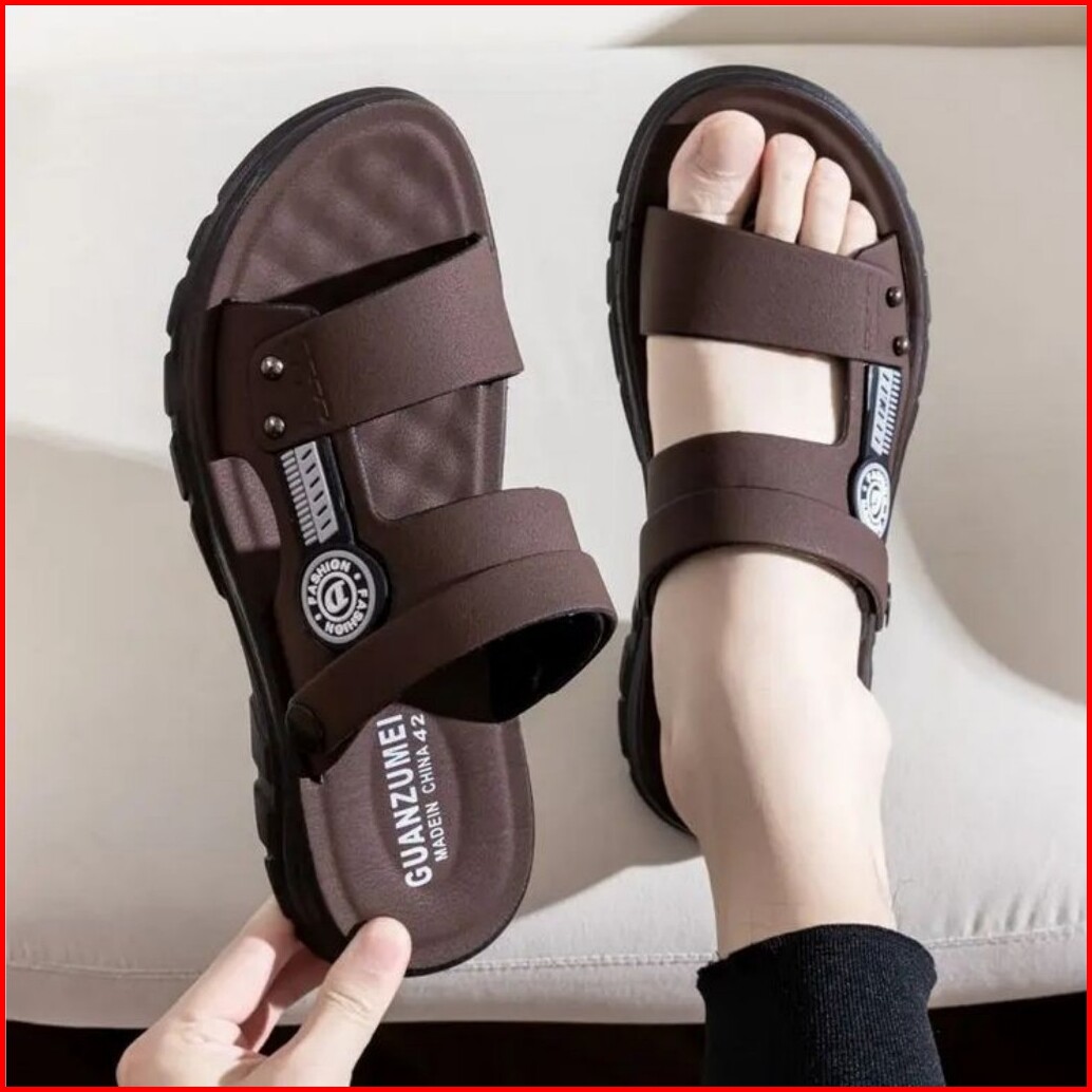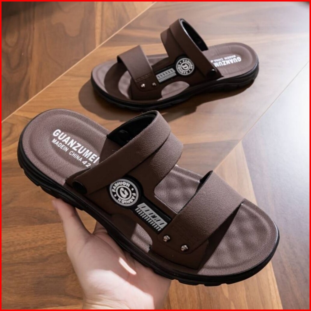 Sandal Pria Keren Model Slop Warna Abu Cream Coklat Size 39 - 43 Original